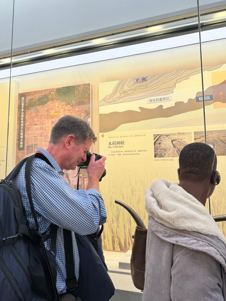 栽培稻、成套農用工具、灌溉系統……走進位于浙江杭州的良渚博物院,英國杜倫大學考古學者羅賓·科寧哈姆頻頻用相機記錄所見,不放過任何感興趣的細節。