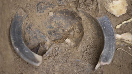 圖三 M2231陶鬲內發現豬骨 (北京市文物局供圖)