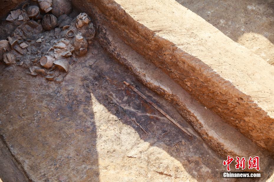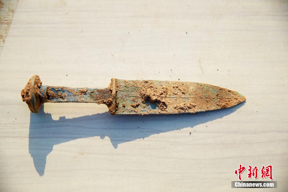 12月3日,河南省文物部門證實該省漯河市發現一處戰國至東漢古墓葬群。目前,該古墓葬群已發掘古墓200多座,出土文物千余件。其中,M90號古墓出土的戰國青銅劍歷經2000多年仍然鋒利。該古墓葬群于今年9月份在鐵路建設中被意外發現,由河南省文物考古研究院與漯河市文物考古部門進行聯合考古發掘。圖為出土的一把青銅匕首。