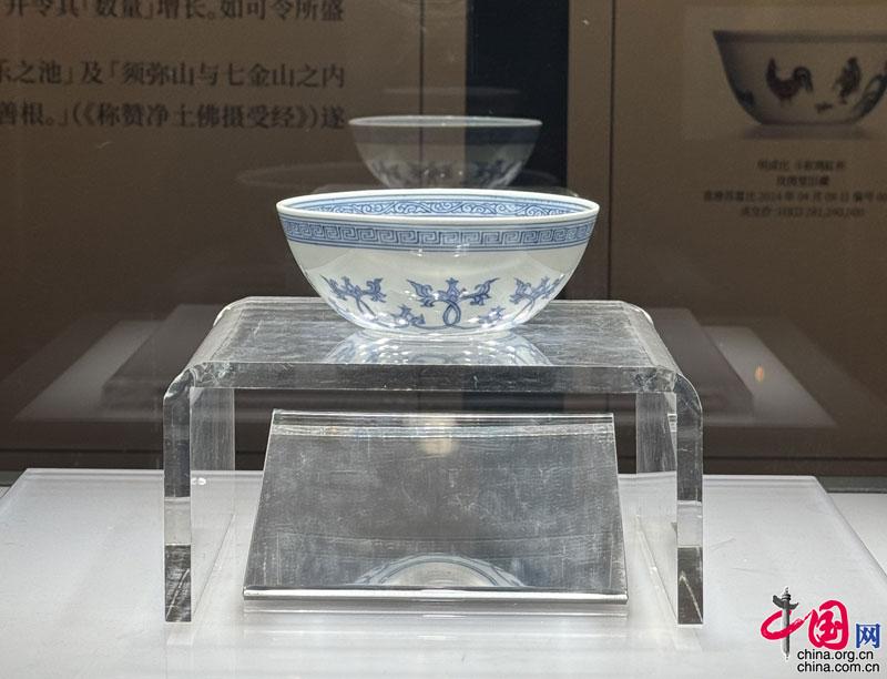 明成化 青花外海石榴紋內梵文臥足碗 攝影 中國網記者 蘇向東