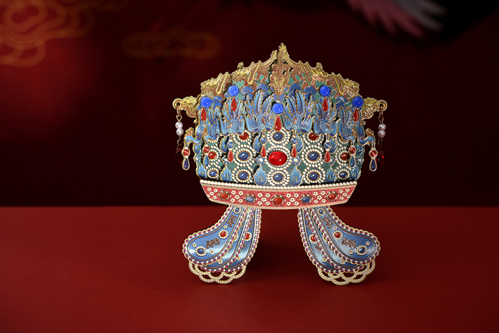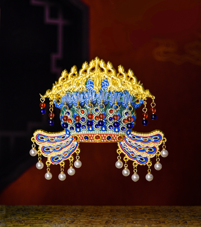和文物的繁復工藝類比,鳳冠冰箱貼在文創類別中也屬精工細作。它在設計上延續了九龍九鳳冠的華麗風格。設計師通過3D打印技術精確還原了鳳冠的形態,同時采用木質和金屬兩種材料,呈現出質感上的多樣化。每一粒串珠,都由工人手工組裝完成,可謂“粒粒皆辛苦”。而鳳冠中間橢圓形紅色寶石的選擇與鑲嵌,體現了中國傳統文化中對自然形態的尊重和審美偏好。