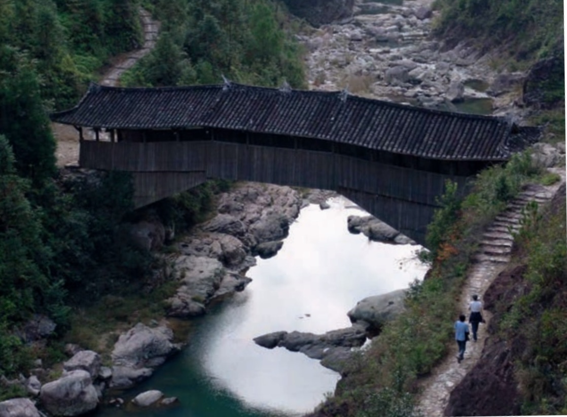 在浙南閩東山區,廊橋的種類繁多,有石拱廊橋、木平梁廊橋、伸臂疊梁式廊橋、八字撐木平梁廊橋、木拱廊橋等樣式。在所有的廊橋中,木拱廊橋的營造技藝最為復雜,是世界橋梁史上的絕品,也是我國古橋梁研究的活化石。木拱廊橋營造技藝,被聯合國教科文組織列入“急需保護的非物質文化遺產名錄”(編者注:現轉入“人類非物質文化遺產代表作名錄”)。
