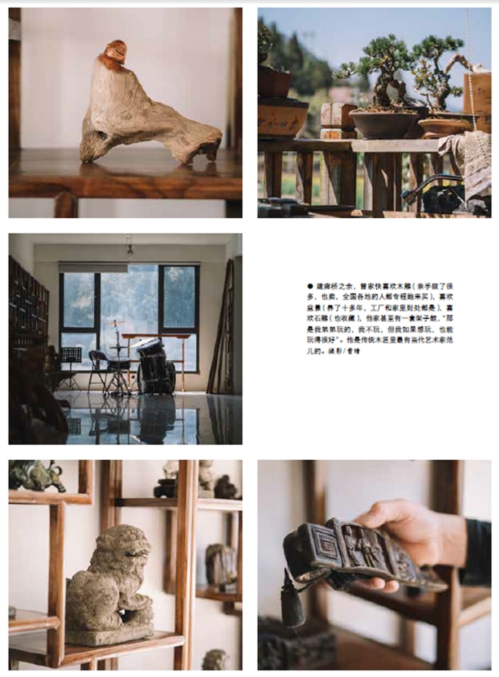 2021年6月中旬,我在泗溪鎮曾家快的家中見到他,位于鎮街邊的曾家一樓已完全變成一個工作間,地上墻角堆放著各種機器和木料。墻壁上掛著照片,那是曾家快參與電視臺錄制時獲得“斧頭王”稱號的情景。曾家快說,這都不足為奇,如果讓你練上幾個月,你也可以用斧頭把雞蛋剝得很好。只不過,剝雞蛋到底只是一個噱頭,造廊橋才是自己的人生使命。