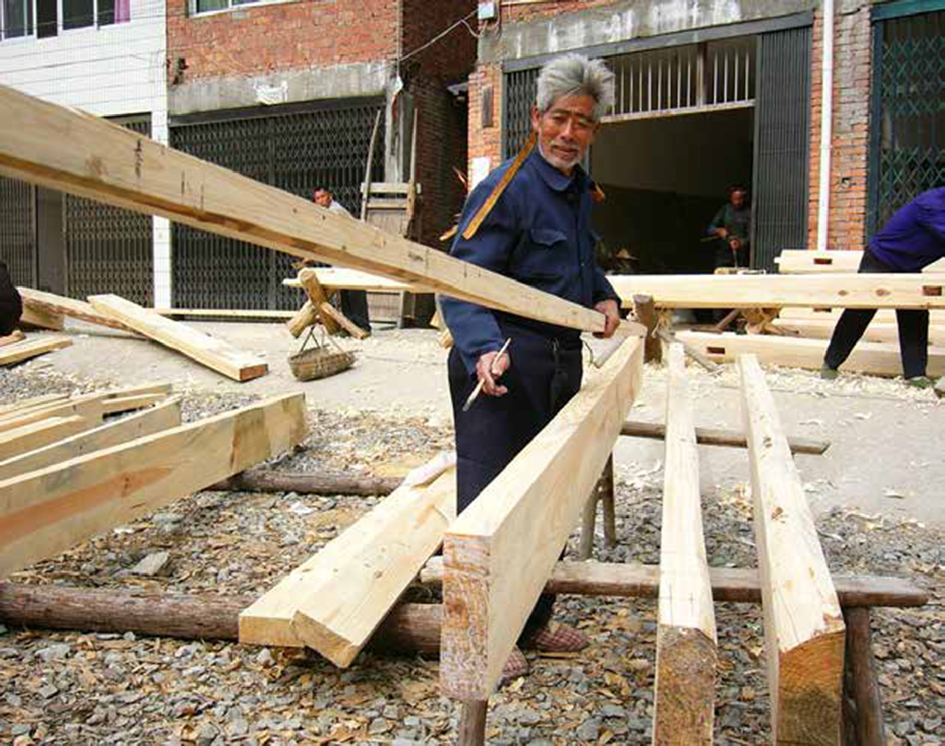 木拱廊橋的營造技藝,在以往的資料記載中并不多見,尤其是對于營造技藝的“老司”(泰順當地方言,即“老師傅”的尊稱),資料更是很少。專家們曾多次對浙南閩東現存的木拱古廊橋考察調研,發現大多數古廊橋幾乎都出自福建匠師之手。例如,泰順的薛宅橋造橋主墨,是福建壽寧巧匠徐元良。景寧的梅崇橋梁上,也有墨書題記,顯示匠人們來自福建:“福建省福寧府寧德縣主墨木匠李正滿、張成德、張新佑、張成官。副墨木匠祖觀、祖極、祖發、張茂江、張成號、張成功、昊天良?!倍?,木拱廊橋的技藝還有人傳承嗎?在泰順還能找到碩果僅存的老師傅嗎?歷史上這些民間造橋大師,難道只能隱藏于廣袤的山村,悄無聲息地存在,又悄無聲息地湮沒于時間的荒野嗎?