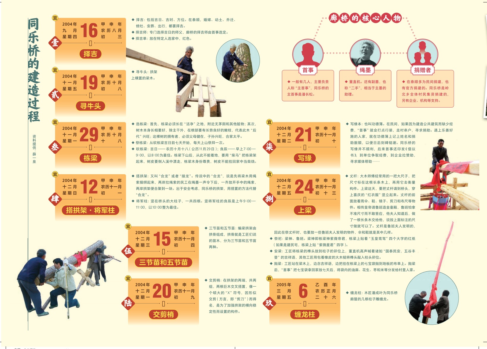 董直機嚴格按照傳統民俗的要求,來安排每項建筑流程與儀式,這給不少文物和民俗專家留下了珍貴的一手資料。這座同樂橋,后來被定位為1949年之后第一座以傳統技藝建造的編梁木拱橋。