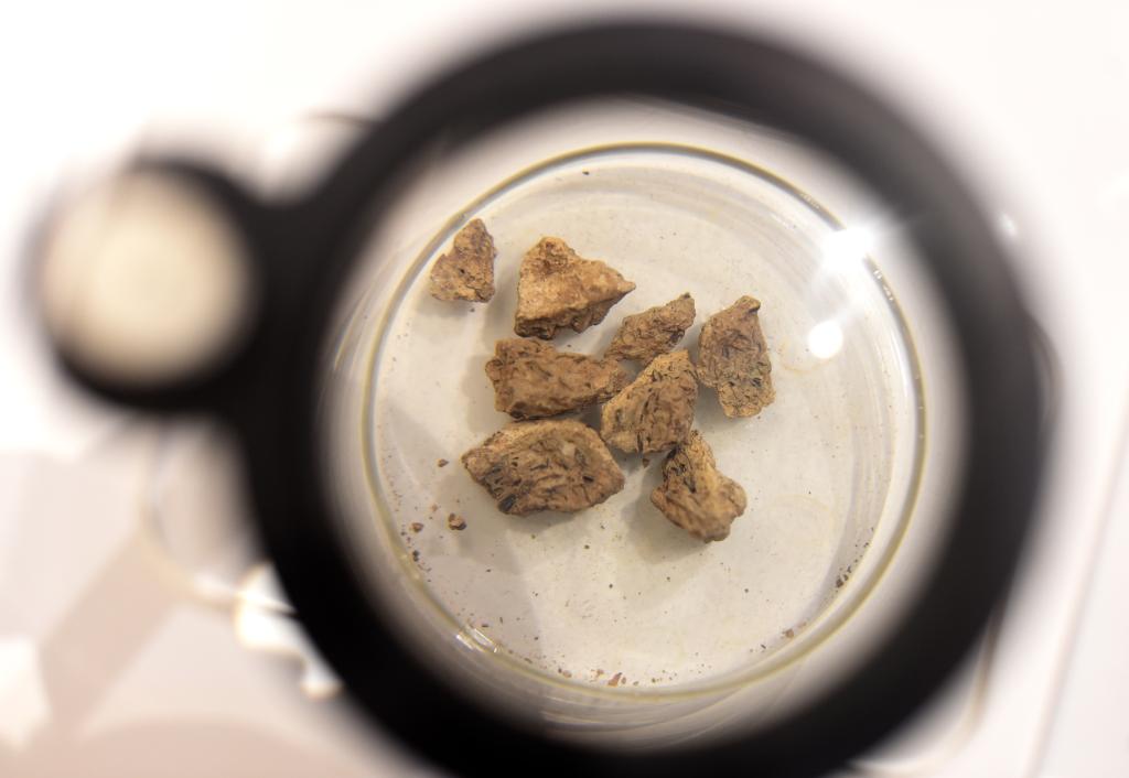 這是2020年11月13日拍攝的上山考古遺址公園內展出的摻雜稻殼的燒土塊。(新華社記者 韓傳號 攝)