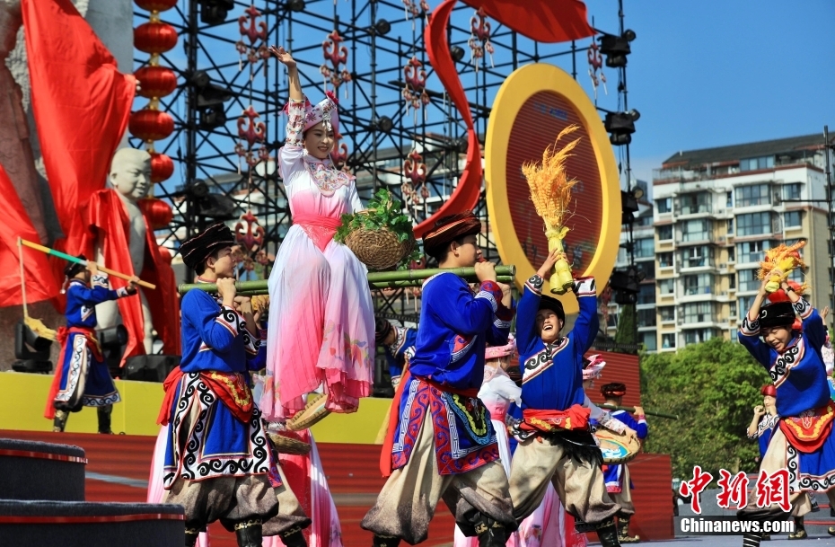 羌年在羌語中稱為“日麥節”“日麥吉”,是羌族最隆重的節日。圖為情景舞蹈《秋收》表演。