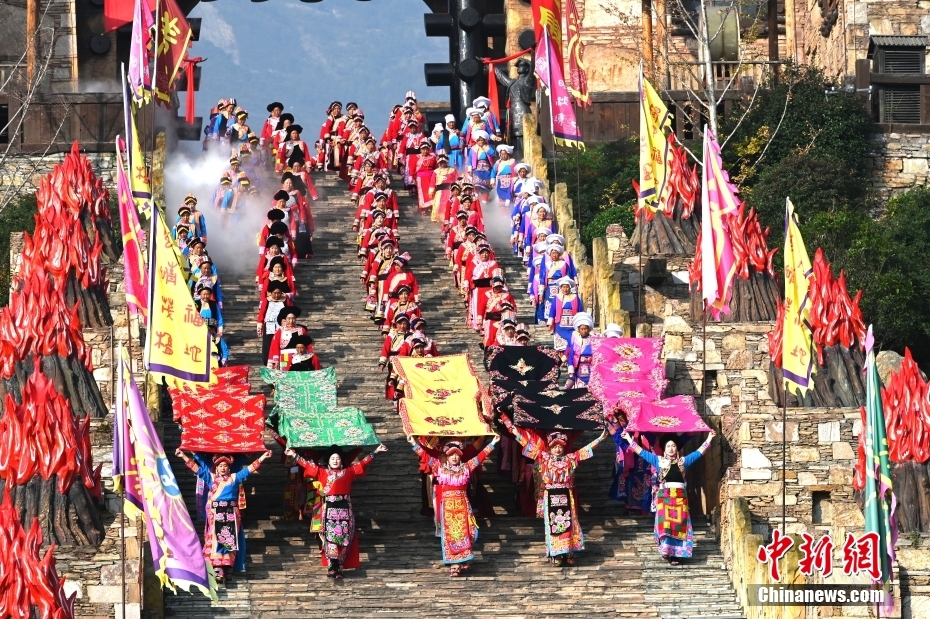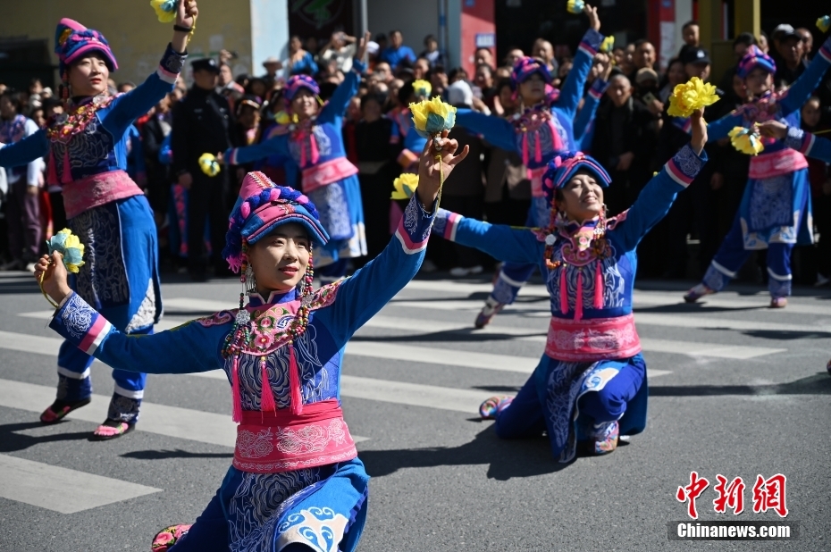 農歷十月初一是傳統的羌歷新年,一場非遺巡游展演在四川茂縣舉辦。圖為非遺巡游展演現場。