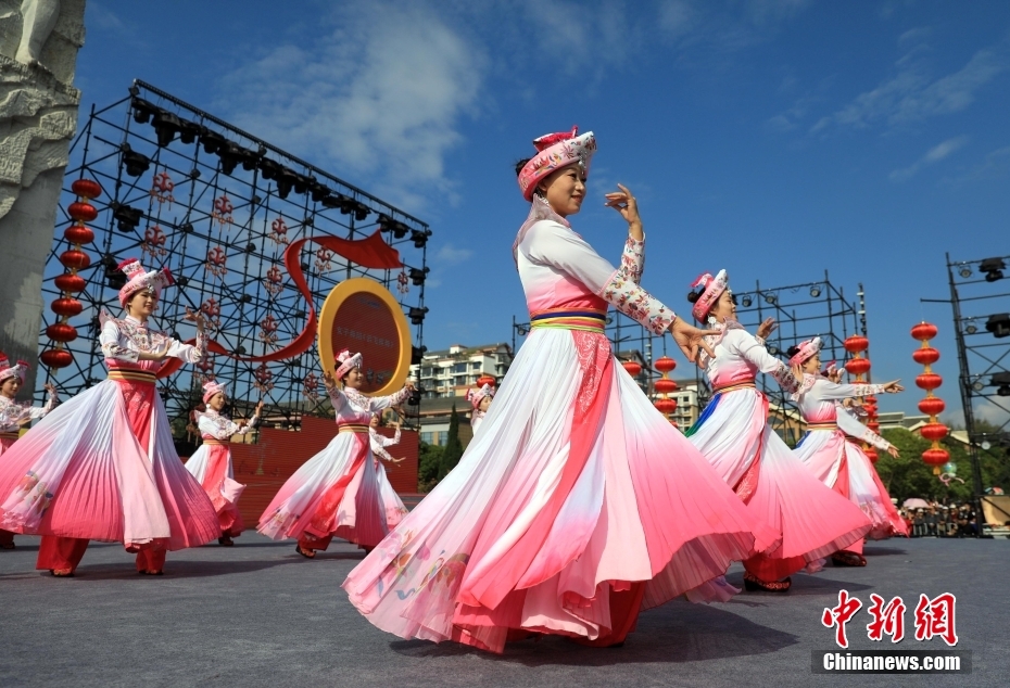 以“走北川過羌年”為主題的羌年慶?;顒釉谒拇ㄊ”贝h舉行,通過羌族原生態歌舞文化藝術表現形式,展現山水之美、人與自然和諧共生的浪漫詩意。羌年在羌語中稱為“日麥節”“日麥吉”,是羌族最隆重的節日。圖為女子舞蹈《云飛蝶舞》表演。