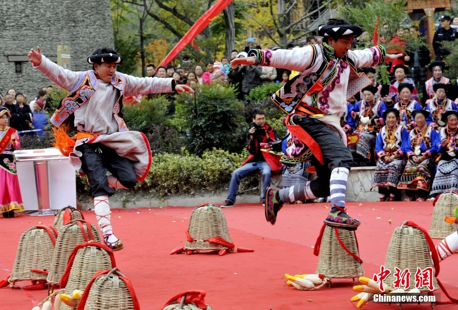 11月1日,農歷十月初一是傳統的羌歷新年,第七屆四川省國家級羌族文化生態保護區成果展暨2024羌年慶?;顒釉诎沃菝h舉行。羌族民眾身著節日盛裝,以多種方式慶祝羌歷新年。圖為慶?;顒蝇F場。