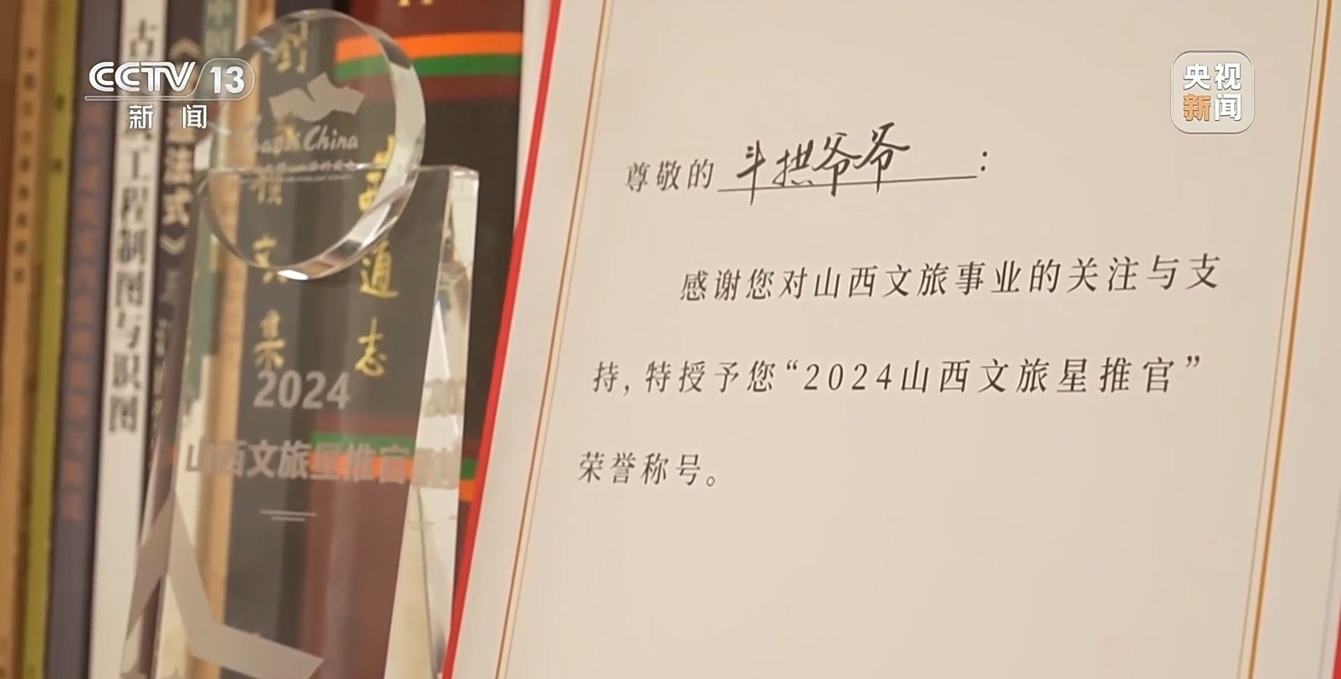 本周,王永先收到了山西文旅部門頒發的年度文旅星推官證書,以此感謝他對文旅事業的關注和支持。