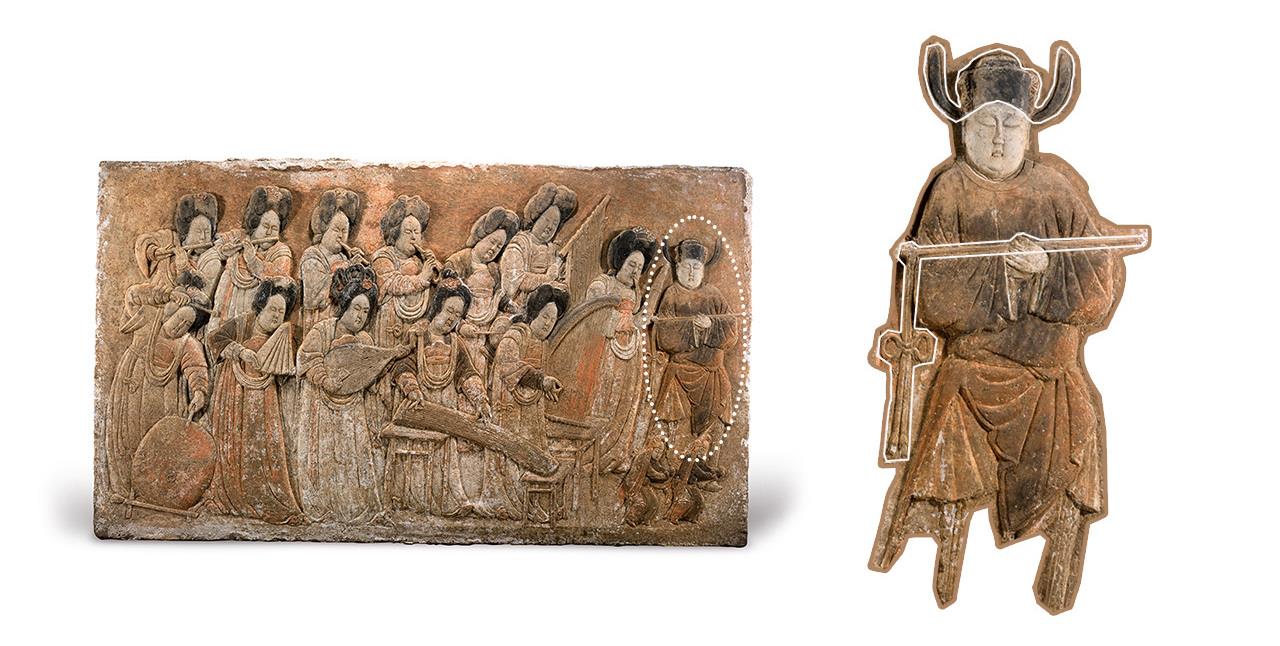 △最右的人物雙手持一根結有彩帶的橫桿,似乎是這支樂隊的指揮