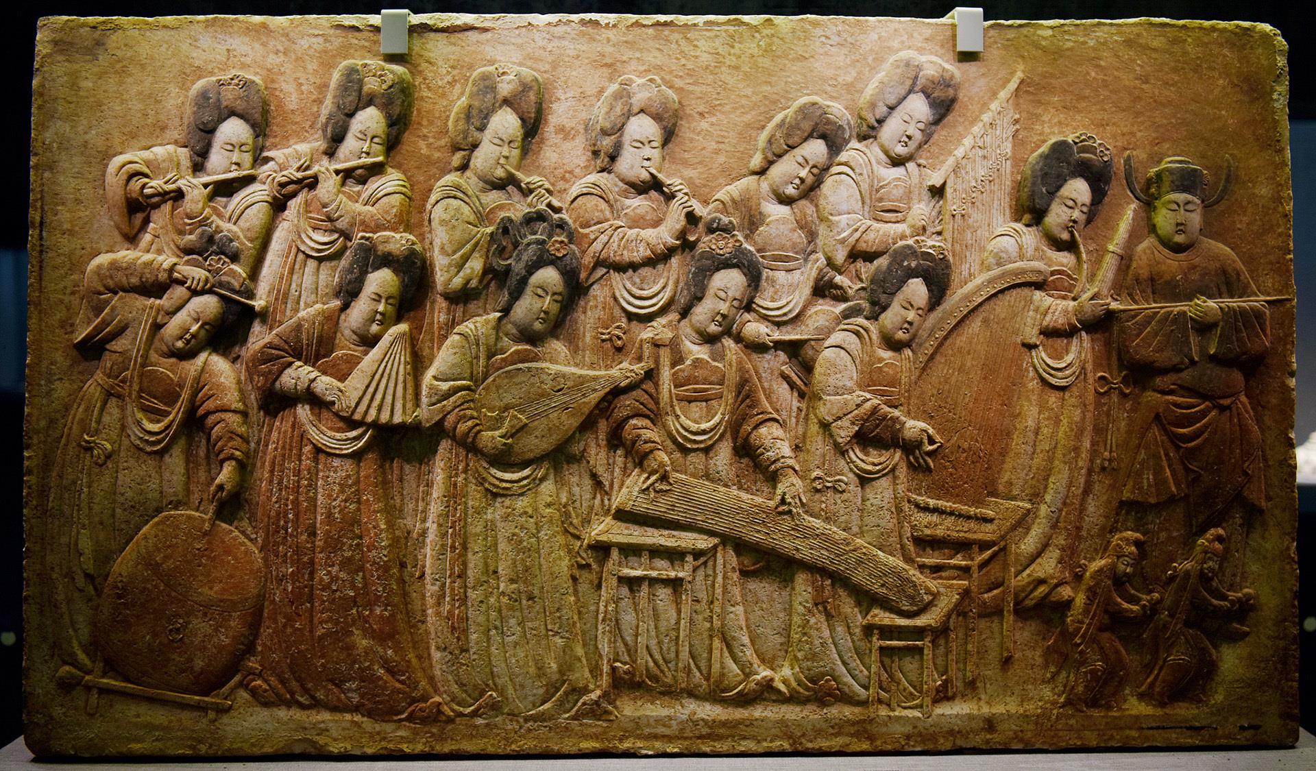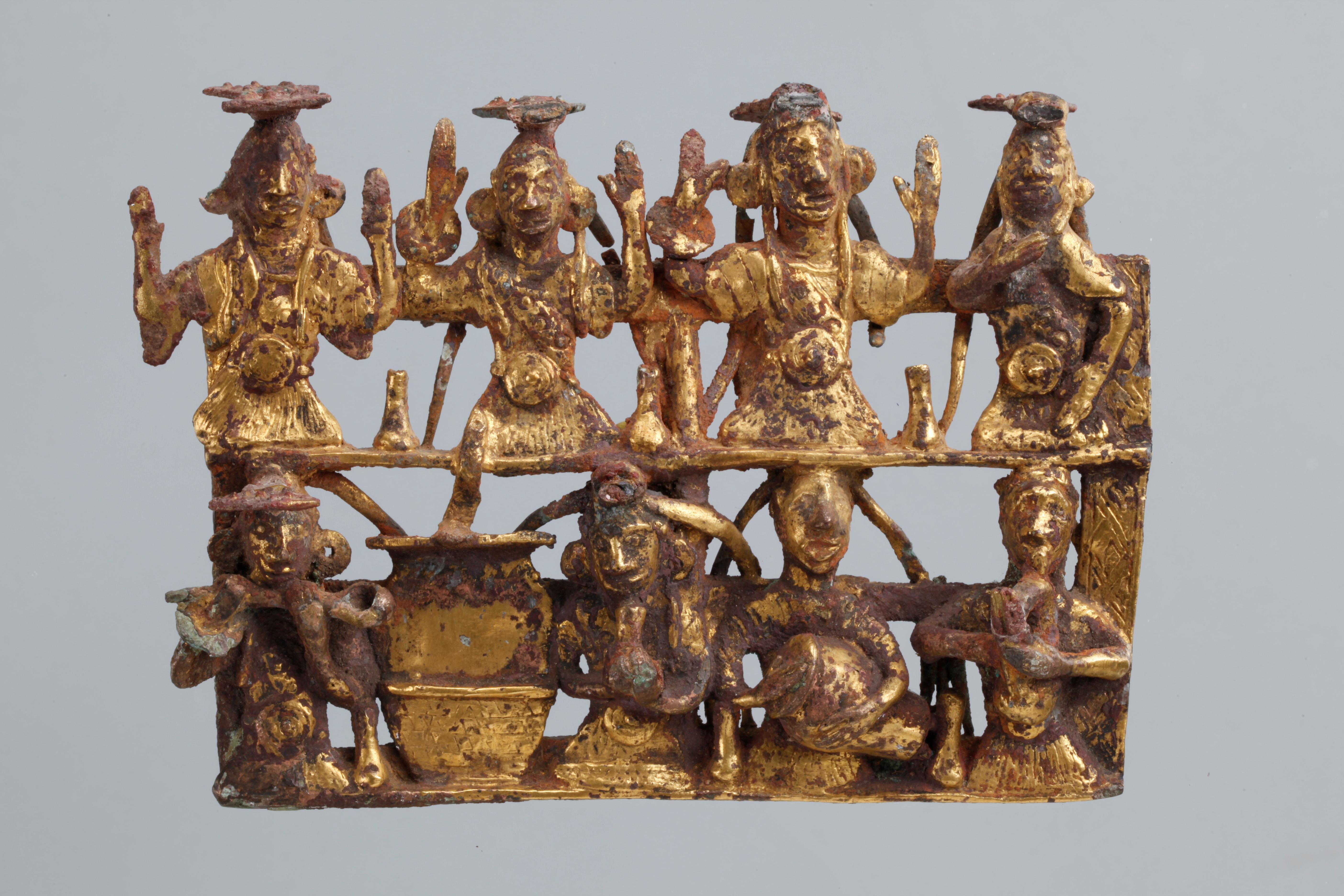 △鎏金八人樂舞銅扣飾云南省博物館藏