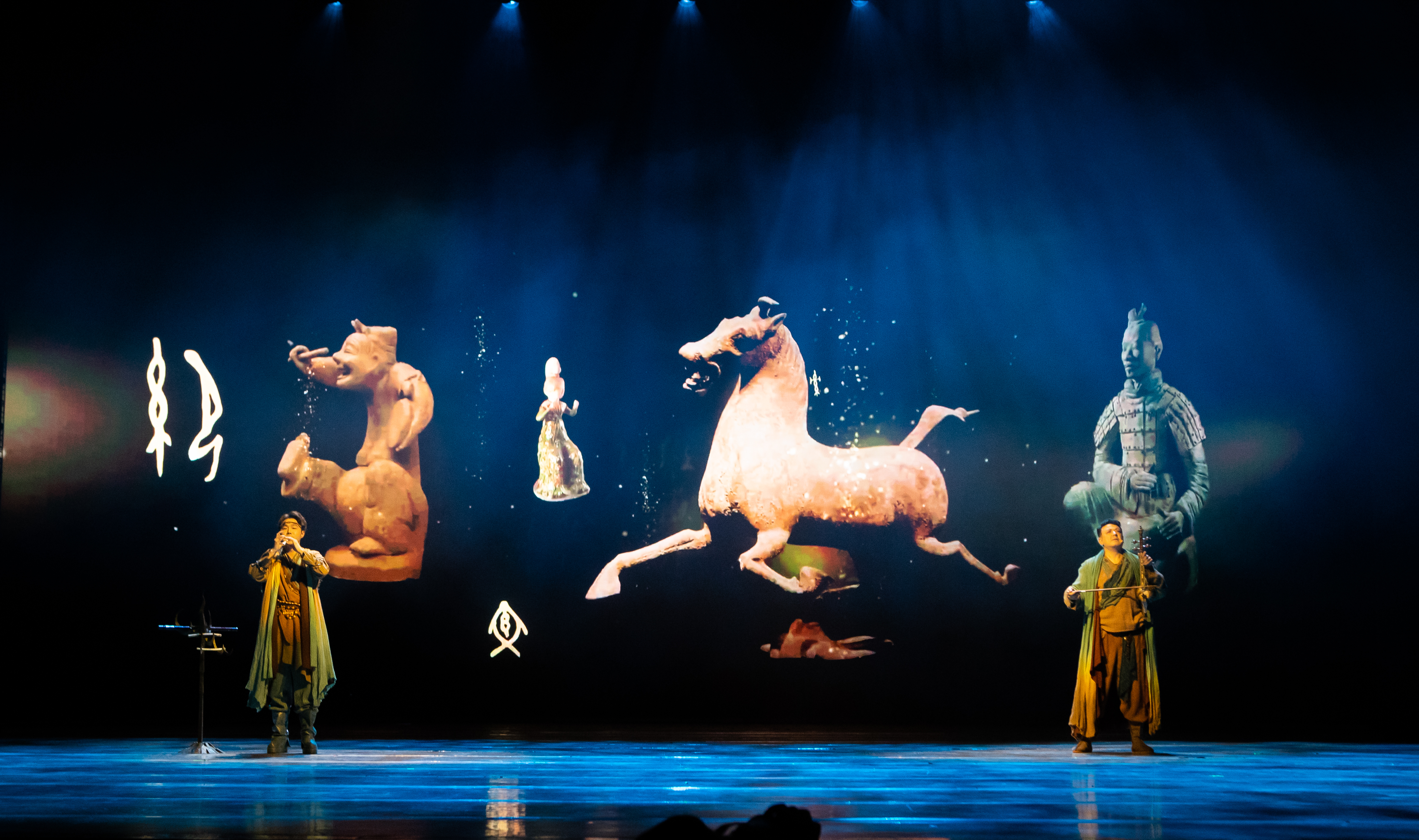 演出分為“序幕”“尾聲”以及“古今共鳴”“萬疆共美”“家園共筑”三個篇章,通過“當代青年”這一戲劇人物的視角,帶領觀眾沉浸式地走入中華文明的歷史長河,開啟一場尋脈中華的文化之旅。音樂短劇、情景器樂演奏、新創器樂秀以及舞蹈表演等多種形式的節目,共同呈現了一場跨越時空、地域的中華文化盛宴。