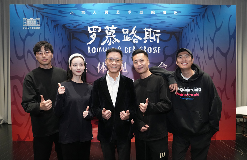 12月30日,北京人藝新排小劇場劇目《羅慕路斯》舉辦媒體見面會。北京人民藝術劇院院長、本劇導演馮遠征率本劇主演楊明鑫、陸璐、金漢、周帥及主創人員悉數亮相。北京人藝副院長秦新春、副院長張鵬出席發布會。(北京人藝供圖)