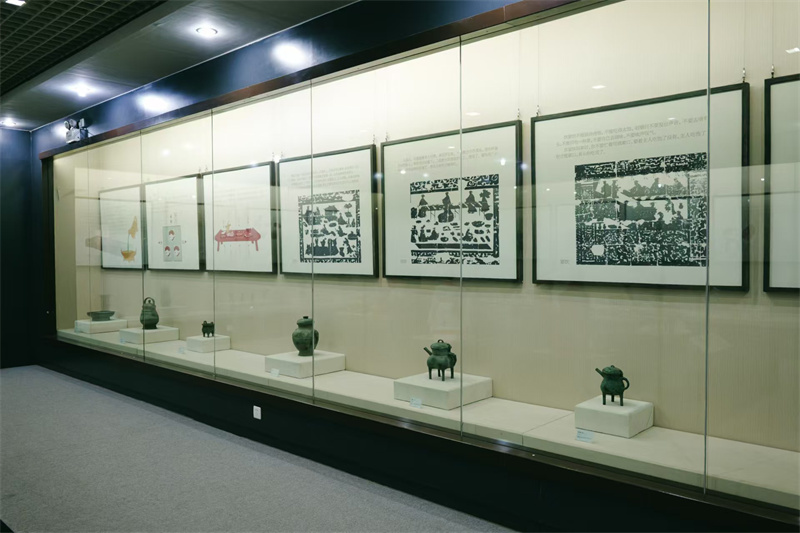 “燕都宴饗——舌尖上的燕國”的展品涵蓋了食器、酒器、水器等多個類別,包括堇鼎、伯矩鬲、克罍、克盉、戈父甲甗、單子卣、祖丙尊、未爵、父乙觶、蟬紋盤等25件青銅器展品,全方位展示燕國飲食文化、飲食風貌。同時,展覽還運用圖文資料和兩組復原模型,生動還原了西周貴族的宴饗場景和盥洗禮場景,讓觀眾仿佛穿越時空,置身于三千年前的西周燕國宮廷之中,親身感受那份莊重而熱烈的宴饗氛圍。