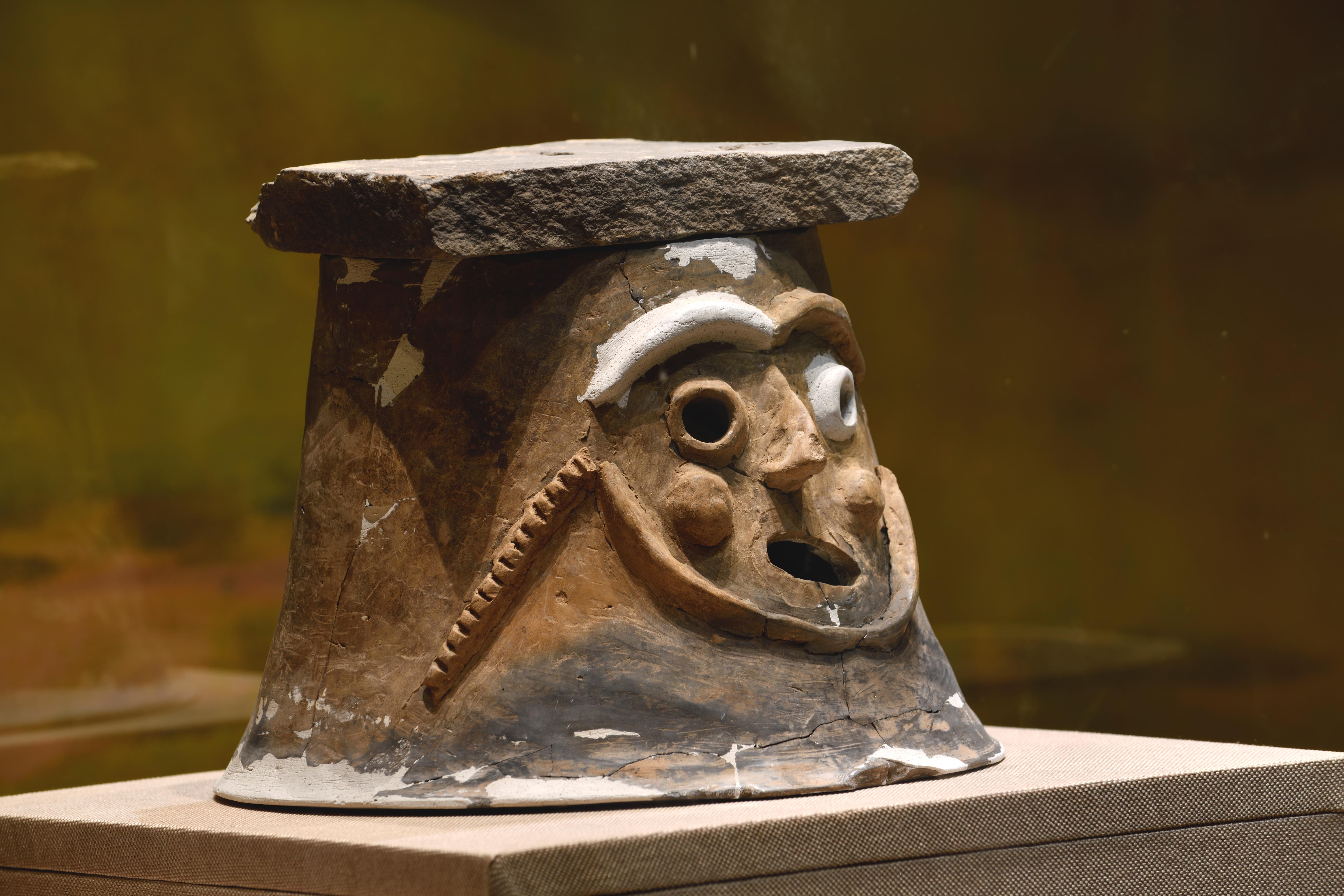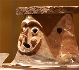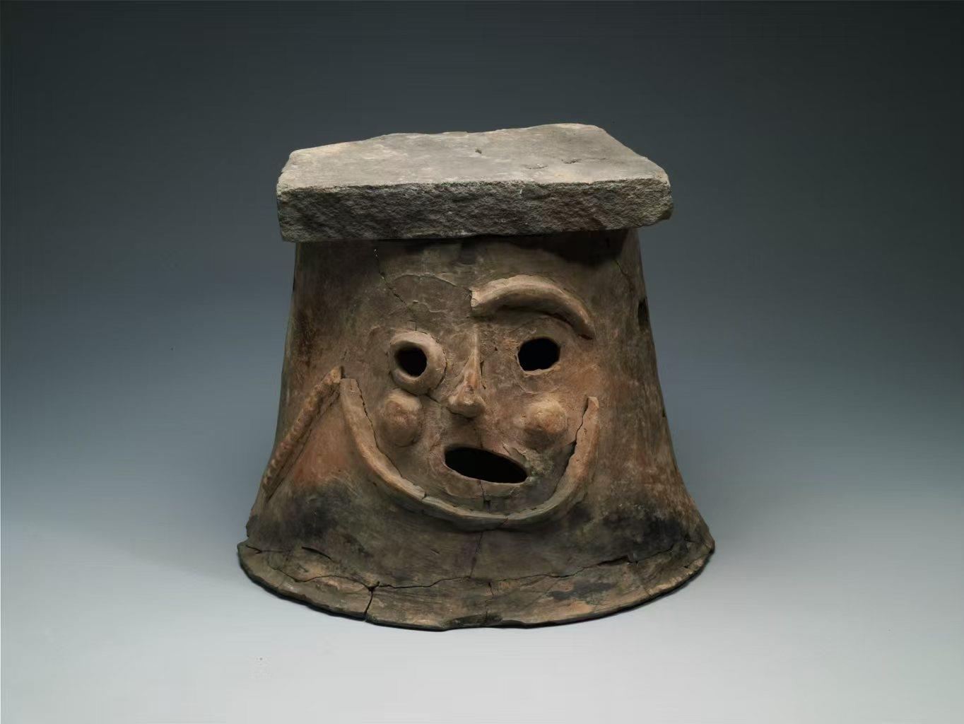 △“陶人面筒形器”頭部兩側各有一個圓孔,是它的雙耳