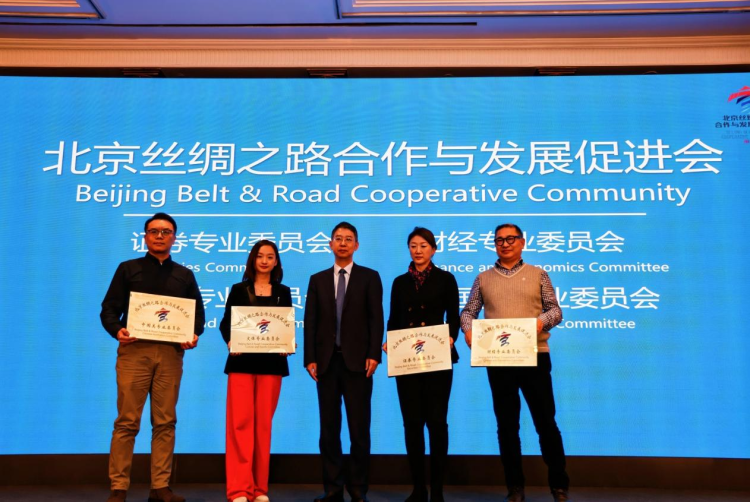 論壇上,北京絲綢之路合作與發展促進會宣布成立證券專業委員會、財經專業委員會、文化體育專業委員會、中國美專業委員會,董少鵬會長向四個專業委員會授牌。