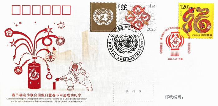 中新網杭州1月26日電(林波 張佩麗 陶國霞)1月29日,“春節確定為聯合國假日暨春節申遺成功紀念封”將正式對外發行。