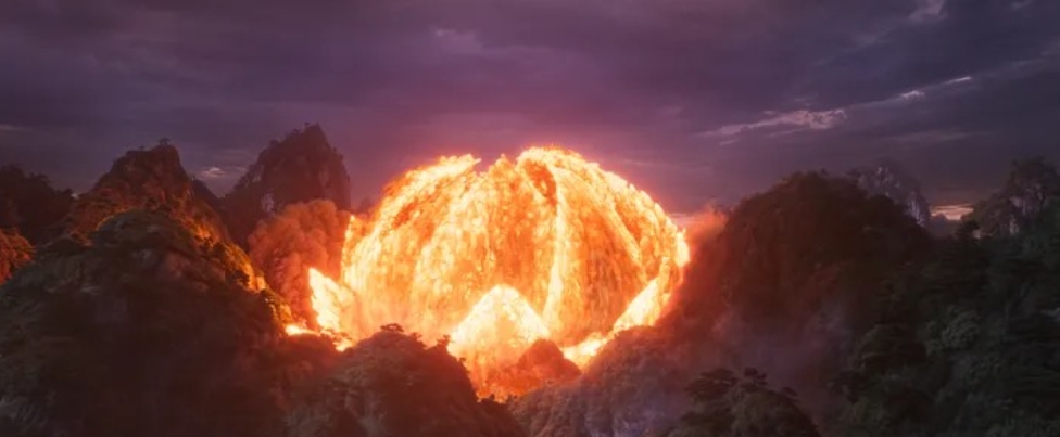 杜春暉:《哪吒2》中最難的一個場面是要能呈現出兩軍對戰、像海浪一樣互相翻涌的效果,這是之前《哪吒1》中沒有出現過的,更是《哪吒2》獨有的特效類型。尤其我們呈現的是一個“聰明”的海浪,既要表現出浪花的動態,也要表現出海浪有主觀能動性,比如沖撞之后能再回來,再繼續沖撞。除了達到對規模宏大的要求,更要達到對粒子特效的節奏感、韻律美的要求。這些東西都是我們不斷突破自己,包括在現實生活中觀察而受到的啟發,比如在夕陽朝陽的光線、云彩變化的觀察中得到靈感。