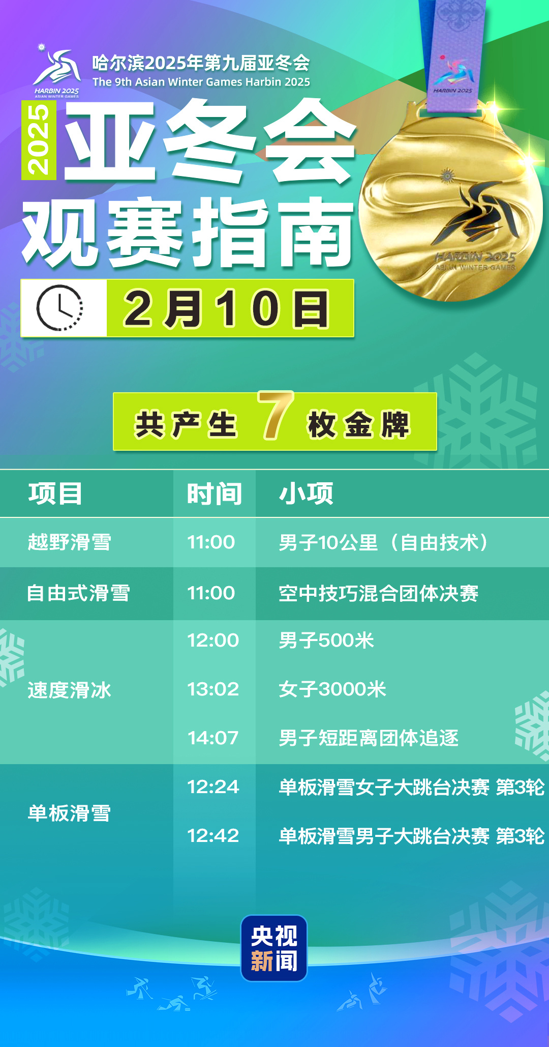 △來源:哈爾濱2025年第九屆亞冬會官網,截至2月9日20時。具體比賽時間以實際為準。