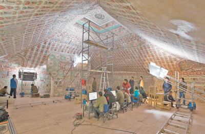 敦煌研究院文物數字化保護團隊在進行數字化采集。