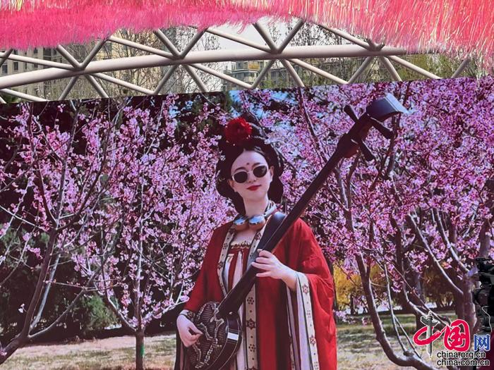 知名音樂UP主、"音樂大三弦演奏技藝"傳承人桂梓為游客帶來精彩演出。 攝影 中國網記者 蘇向東