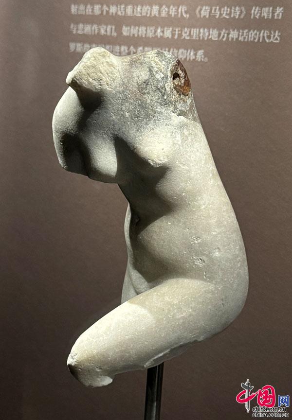 希臘女神阿芙洛狄忒軀干大理石雕像 公元1世紀羅馬帝國時期,發現于克里特島圣尼古拉奧斯。希臘伊拉克利翁考古博物館藏 攝影 中國網記者 蘇向東