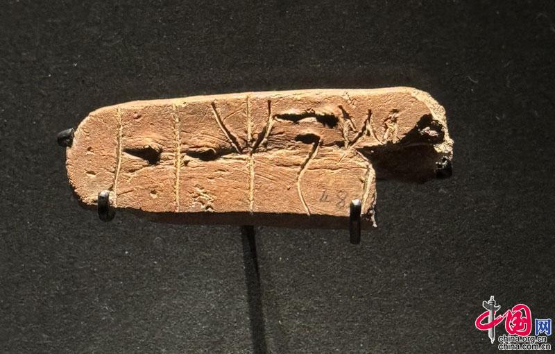 寫有線形文字 B的葉形泥板,發現于公元前 1375年至公元前1300年的克里特島克諾索斯王宮。這塊線形文字 B泥板上的文字可能記錄的是向代達羅斯神廟或圣地運送物品之事。當線形文字在克里特島流行的時候,遙遠東方的中國也在使用一種古老的文字甲骨文記錄自己的偉大歷史。