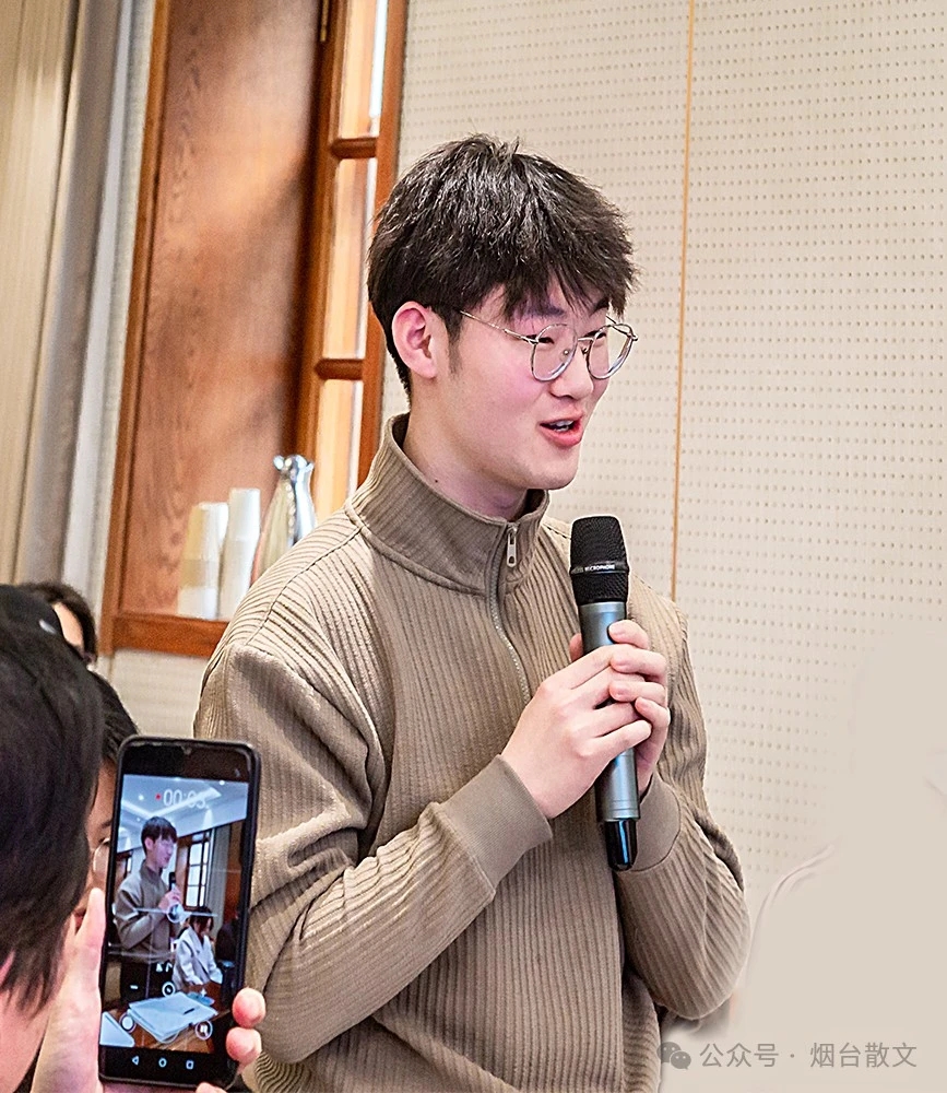 煙大學子曲佳庚:今天有幸參與“黃海潮講壇”才能接觸到散文學會,真是有撥開云霧見月明的感覺,我們可能沒有很高的專業水平,但是有認真學習的態度和青春的活力。