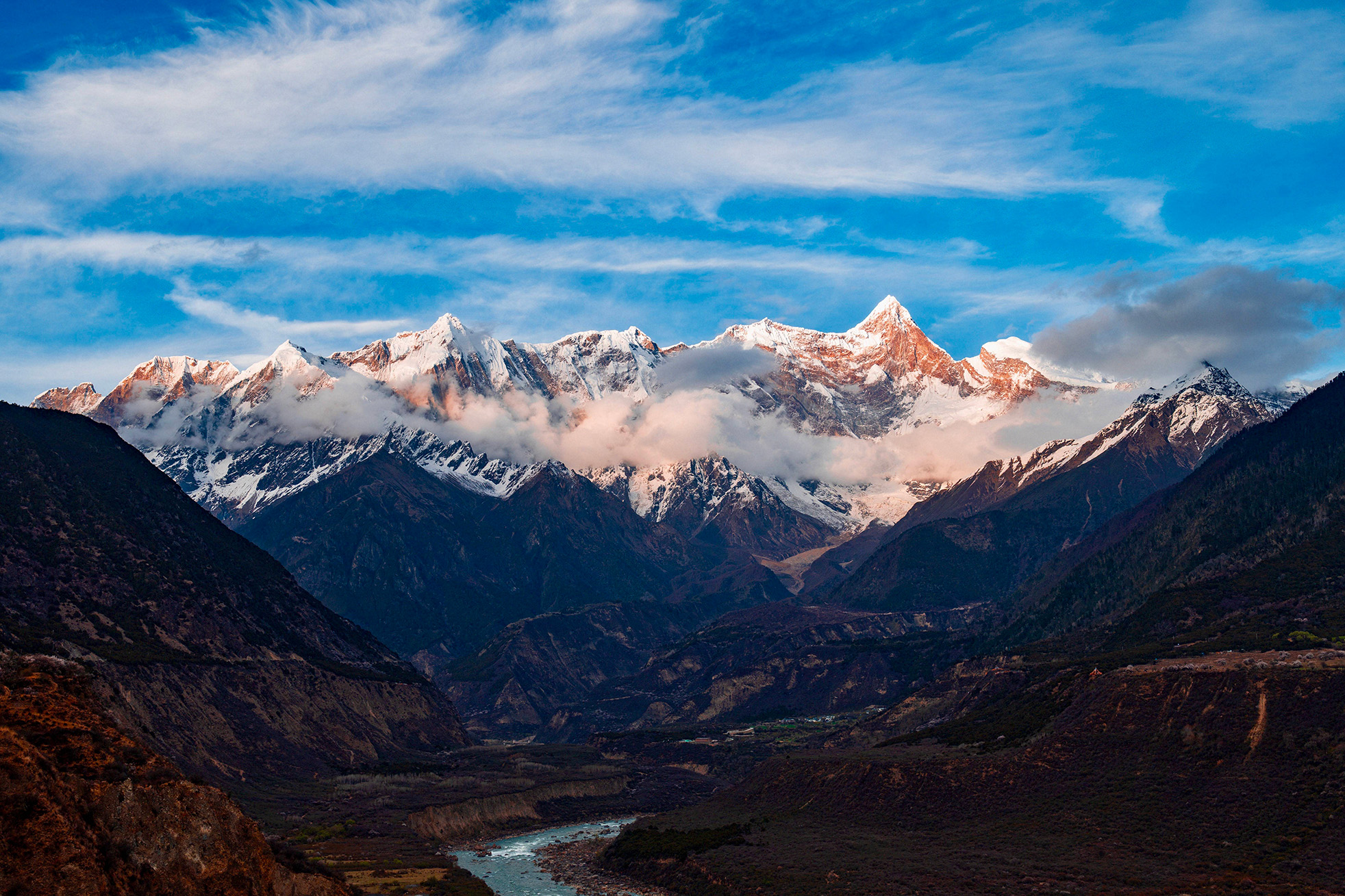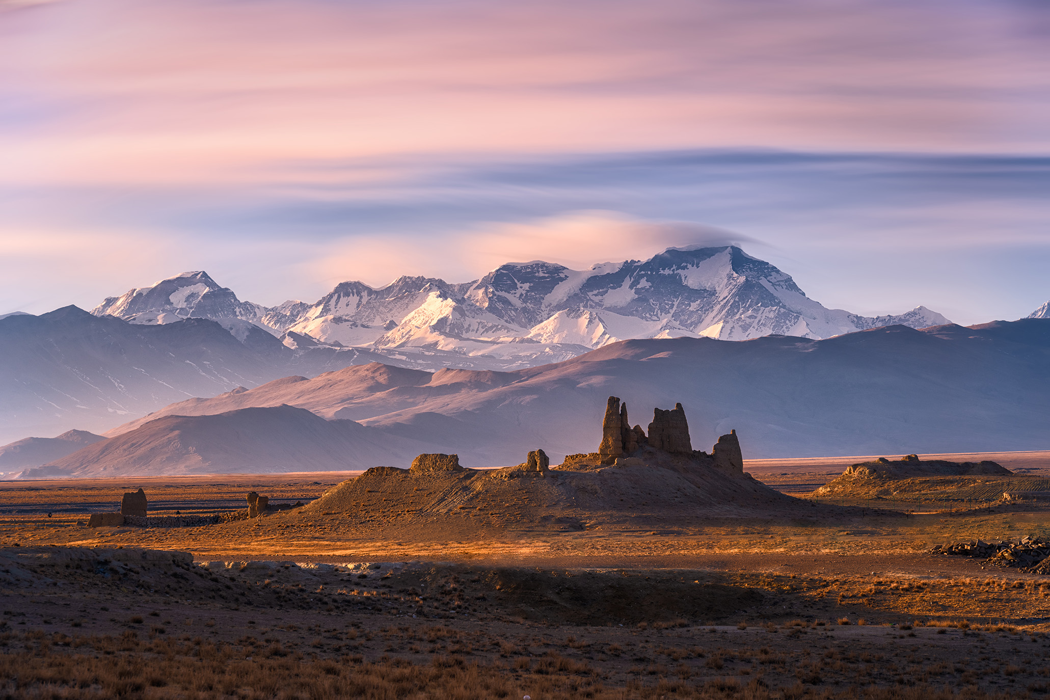 在雪域高原的巔峰,卓奧友峰高聳入云,宛如神圣的守護者。其下,古老的古堡遺跡靜臥,在清晨的微光中散發著神秘的氣息。長焦鏡頭巧妙地壓縮空間,讓雪山與堡顯得無比接近。仿佛在千萬年的歲月長河中,它們一直如此相互守望。