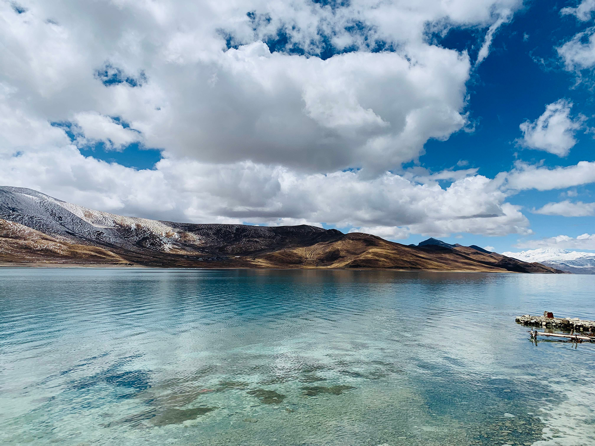 清澈見底的湖水映照著藍天白云,遠處的雪山與連綿的山脈交相輝映,構成了一幅絕美的畫卷。湖面平靜如鏡,仿佛能洗凈心靈的塵埃,讓人感受到大自然的純凈與安寧。無論是雪山的壯麗,湖水的清澈,都能讓人沉浸在這片寧靜的天地中,體驗到一種超脫世俗的寧靜與美好。