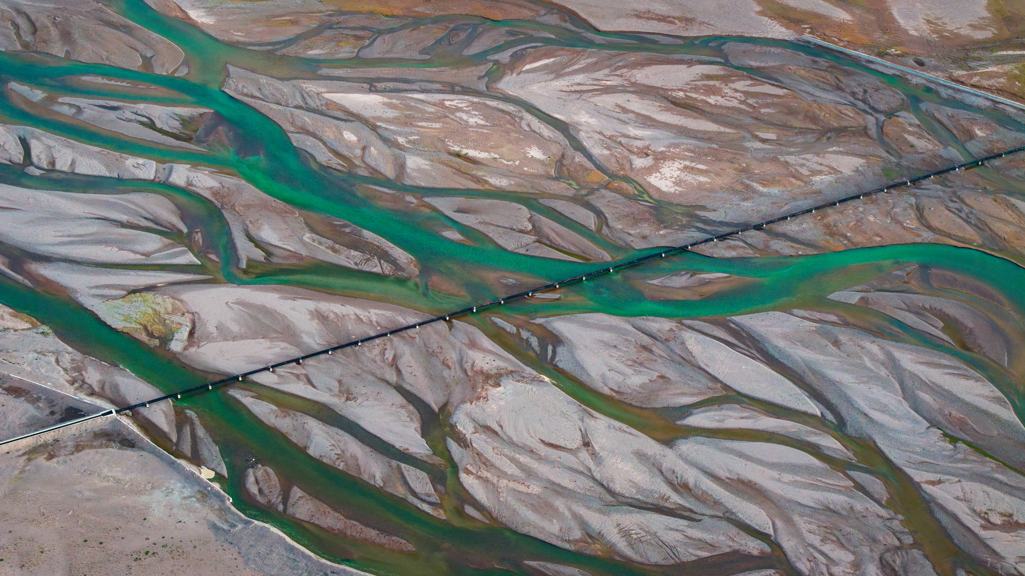 作品捕捉了森格藏布河的獨特風貌。河流如靈動的綠色絲帶,蜿蜒穿梭于廣袤大地,與周邊的沙地交織出宛如脈絡般的奇妙圖案,展現出大自然的鬼斧神工與勃勃生機。