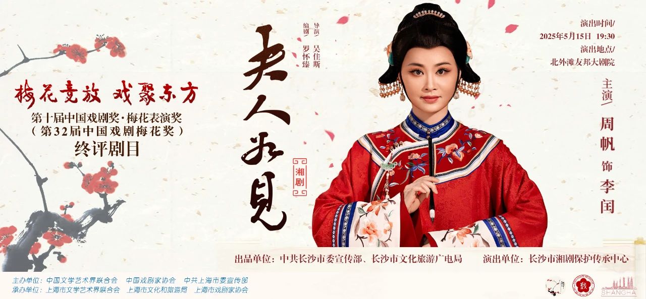 2025年5月8日至21日,由中國文聯、中國劇協、中共上海市委宣傳部聯合主辦的第十屆中國戲劇獎·梅花表演獎(第32屆中國戲劇梅花獎)終評活動將在上海隆重舉辦。終評以劇目現場展演的形式進行,屆時,涵蓋11個戲曲劇種和話劇、舞劇等戲劇藝術門類的17位演員將為廣大觀眾奉獻17場精彩紛呈的演出,終評結果將于5月21日晚第十屆中國戲劇獎頒獎晚會上,與第26屆曹禺戲劇文學獎一同揭曉。