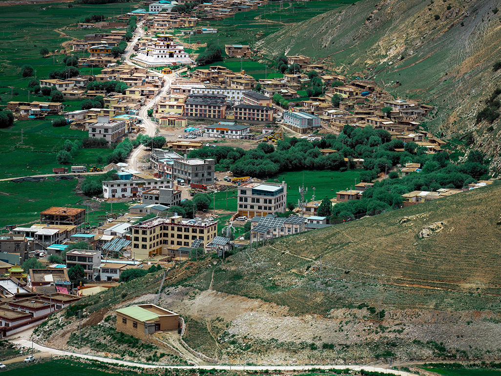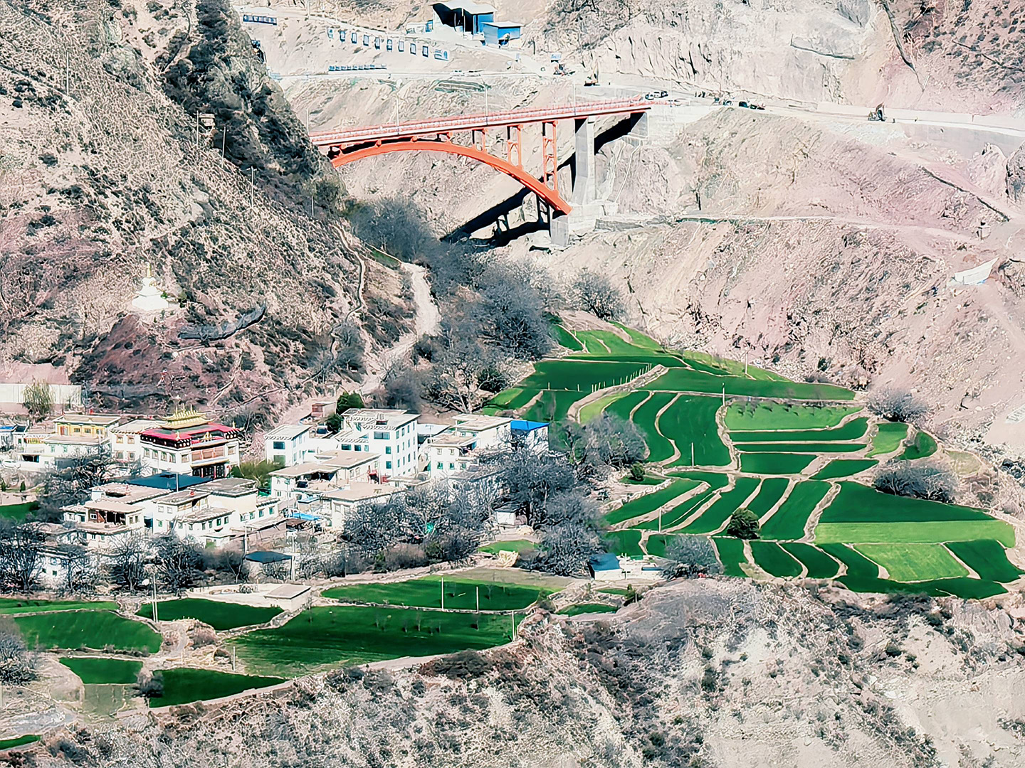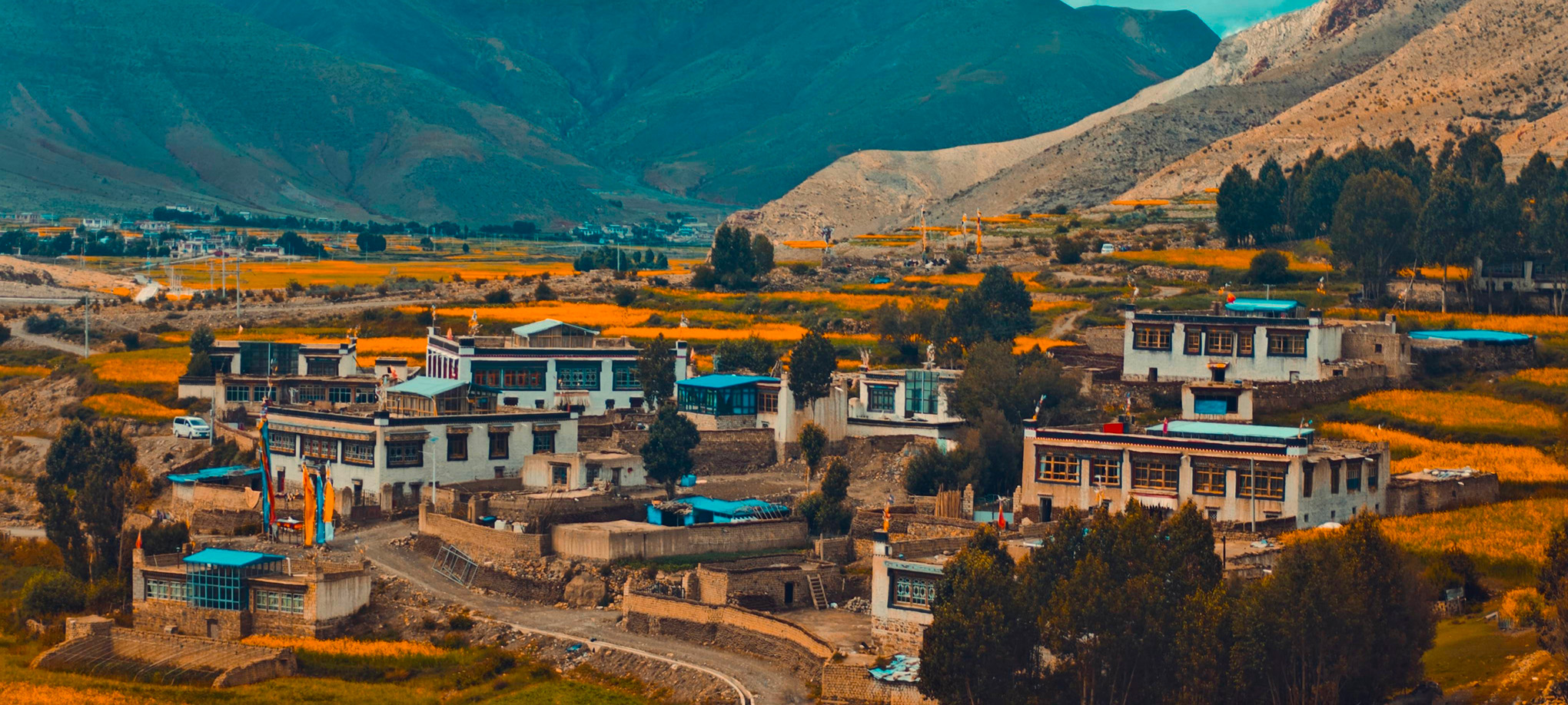 夯土筑成的藏式房屋靜靜矗立,厚重的石墻和層疊的木檐在高原的陽光下投下斑駁的影子。村間小道蜿蜒向前,像一條溫柔的紐帶,巧妙地串聯起錯落有致、散落分布的屋舍,以及遠方連綿起伏的群山。在這里,每邁出一步,都恰似踏上了通往記憶深處的歸程;每一次舉目眺望,皆宛如尋得了心靈棲息之所。