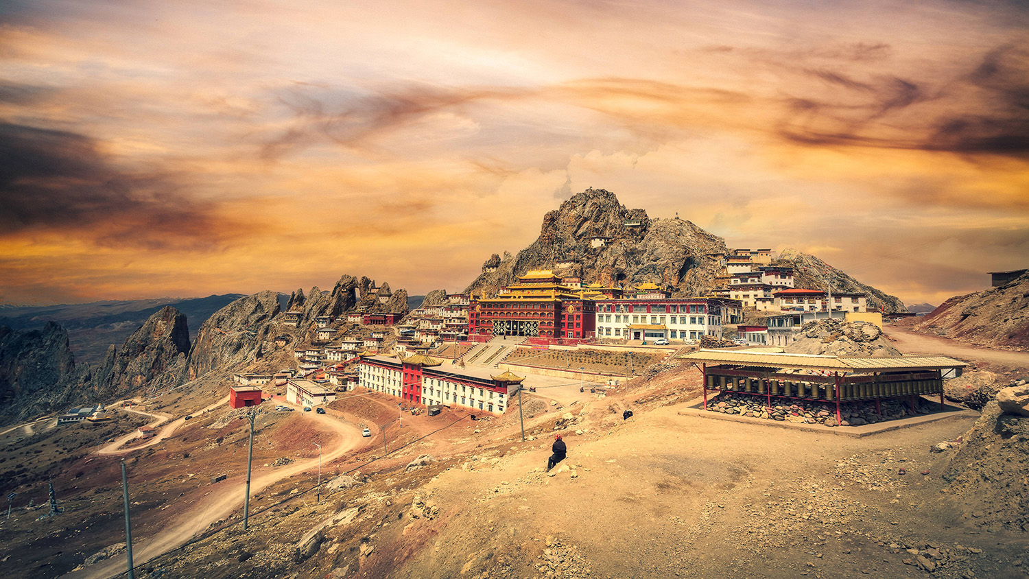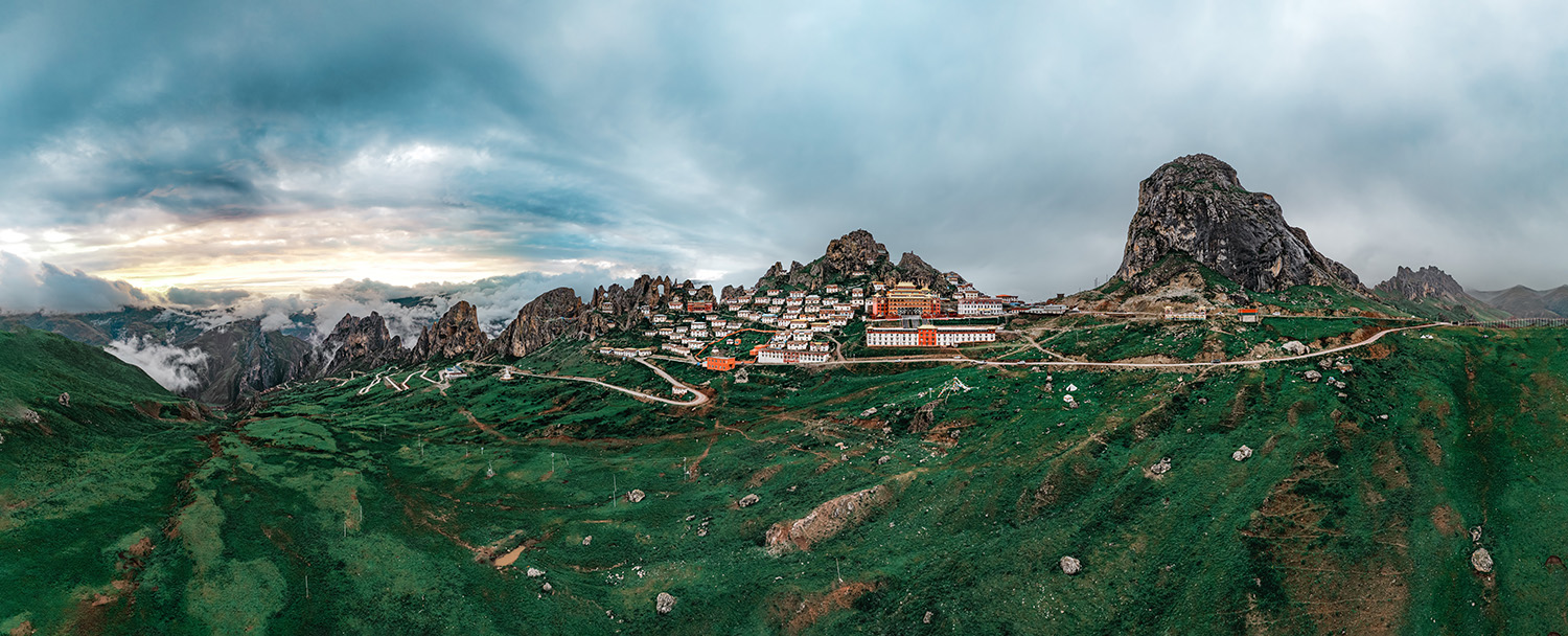 位于西藏自治區丁青縣的孜珠寺如一座懸浮的信仰之城,巍然矗立于嶙峋的群山之巔。絳紅色的寺廟建筑群依山而筑,與灰褐色的陡峭巖壁渾然一體,是人類與自然共同雕琢的奇跡。
