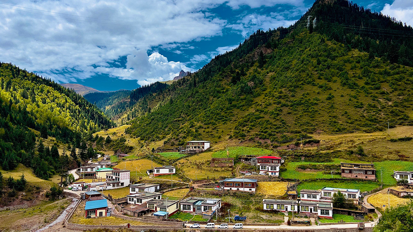 初秋的昌都市卡若區康多村層林盡染,白墻紅瓦的民居整齊排列,門前停放的家用汽車與農用三輪車相映成趣,展現了充滿生活氣息的美好景象,生動詮釋了西藏自治區民生改善與生態保護協同共進的豐碩成果。