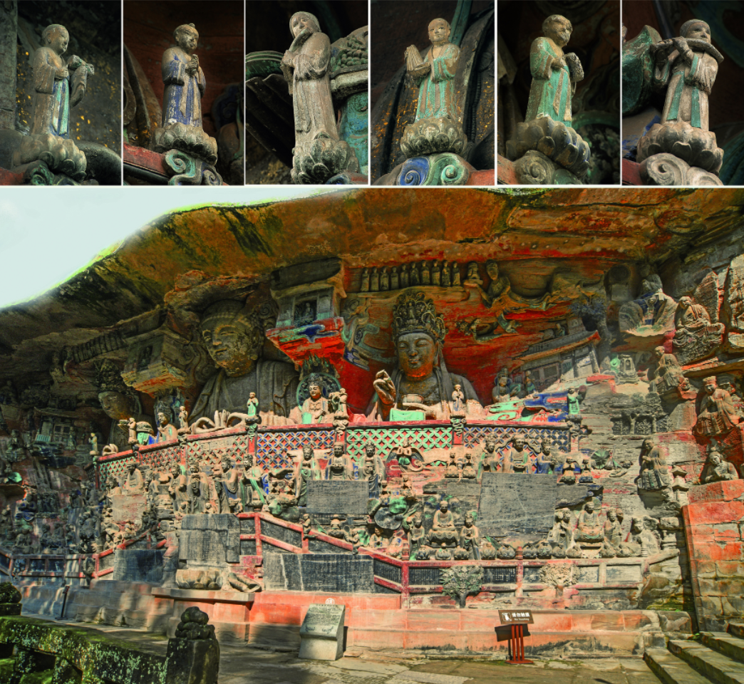在李代才的攝影生涯中,大足始終是他鏡頭下永恒的主題。自上世紀 70年代起,他的鏡頭就對準了大足石刻這一世界文化遺產,無論從黑白到彩色的色彩變革,還是從膠片到數碼的技術跨越,他始終堅守在石刻藝術殿堂前,成為拍攝大足石刻歷時最長、作品數量最多的攝影家。他的足跡遍布大足的石刻山崖,春夏秋冬,朝暉夕照,都能看到他專注創作的身影。