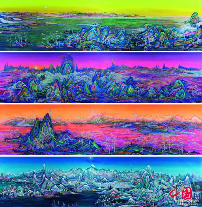 黃宇興,千里江山圖(一組4件) 2017年至2022年,150×600 cm.×4 布面 丙烯