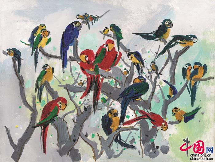 吳冠中 鸚鵡天堂,1994年,61×81 cm. 布面 油畫
