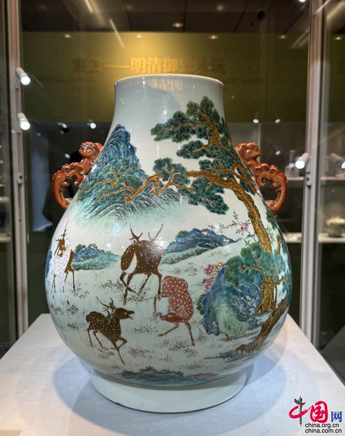 清乾隆 粉彩百鹿尊 “大清乾隆年制”六字三行篆書款 攝影 中國網記者 蘇向東
