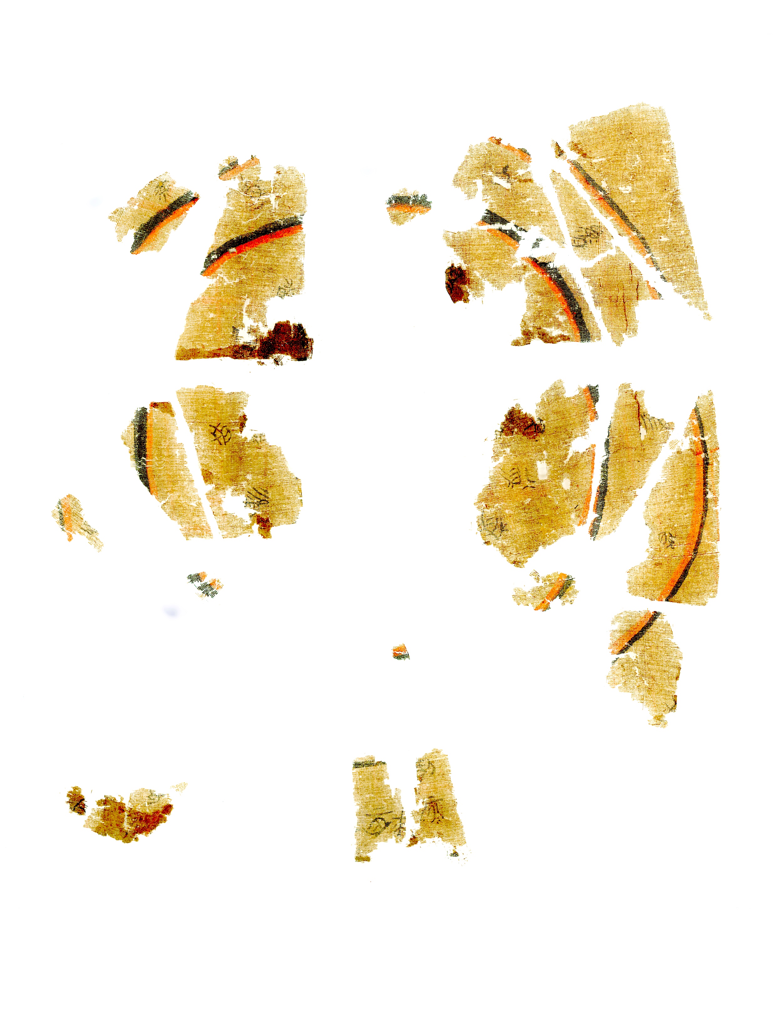 圖為子彈庫帛書中的《攻守占》殘片,紅字由朱砂書寫而成?!豆ナ卣肌肥菓饑鴷r期融合天文歷法、哲學思想與軍事兵法的古代文獻,為研究古代哲學與兵法思想的重要原始資料。