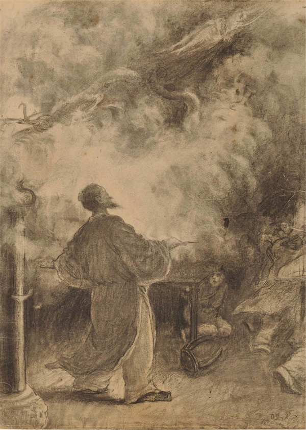 徐悲鴻 《畫龍點睛》畫稿 紙本炭筆 61×45厘米 1922年 徐悲鴻紀念館藏