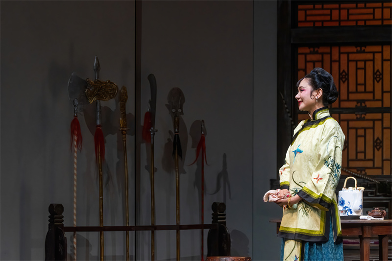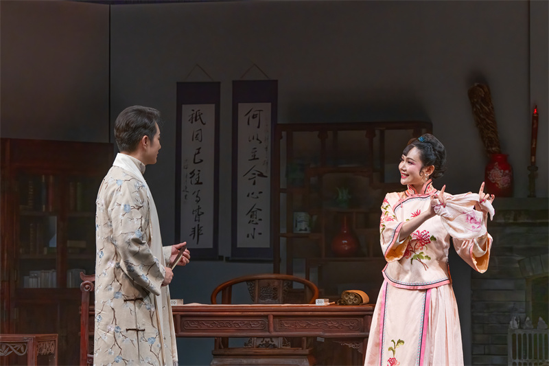 程莉莎飾演的玉春,是作者心中美好理想的化身。她一出場,便將角色的靈動感和生命力帶到了舞臺中央。玉春聰慧勇敢、嬌媚清醒,既有柔情似水的一面,又有堅韌不屈的力量,經由程莉莎的詮釋再次大放光彩?!拔以谟翊荷砩峡吹阶羁少F的品質,就是勇敢,她敢于追求自己想要的東西。她追求自由,在那個年代是一個非常新潮的女子。我希望更多地呈現她享受愛情的這一面,愛情是任何時候都能夠引發共情共鳴的主題?!背汤蛏硎?。