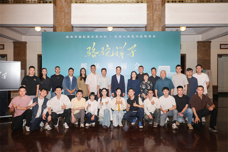 6月24日,北京人藝經典劇目《駱駝祥子》舉辦媒體見面會。北京人藝院長、該劇復排藝術指導馮遠征、副院長秦新春、副院長張鵬、副院長唐燁共同出席。該劇復排導演閆銳、于震與主創王威、侯建濤等,以及演員黃麒源、張曄子、趙正添、周佳鈺、劉宸、王堃、李紫瑞、陳紅旭、原維、韓清、劉奕、周情云、閆巍、羅熙、徐督、李金濤、趙澤棟、杜博濤、龔佳豪、孫嘉良等集體亮相。(北京人藝供圖 攝影:李春光)