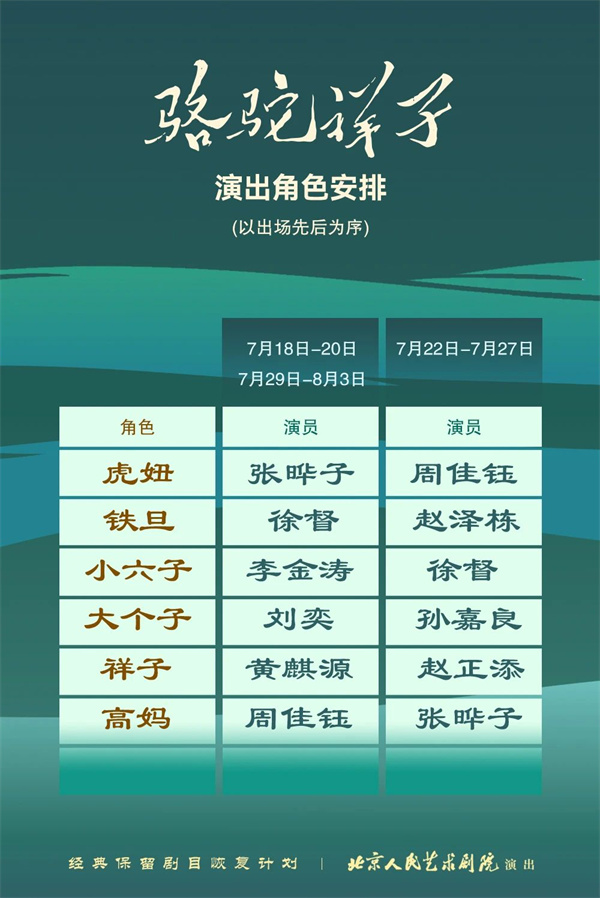 中國網北京6月25日訊(記者 秦金月)7月18日-8月3日,北京人藝經典劇目《駱駝祥子》將在首都劇場上演。