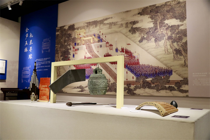 此次展覽展出孔廟和國子監博物館館藏清代御賜的青銅祭器,如清乾隆獸面紋銅簠、清乾隆回紋龍耳銅簋等,為觀眾呈現清代皇家祭祀的至高規格。展廳中擺放了八音樂器(琴、瑟、笙、笛等)以及佾舞舞具(龠、翟),青銅祭器(仿制品)輔以谷物實物,生動還原了“玉振金聲,佾舞于庭”“俎豆馨香,備物昭誠”的祭祀場景。此外,展覽還介紹了大成殿主祀孔子、四配(顏回、曾參、孔伋、孟軻)、十二哲及東西廡從祀的歷代先賢先儒,如韓愈、朱熹、文天祥、顧炎武等,展現了孔廟祭祀人物的豐富譜系。