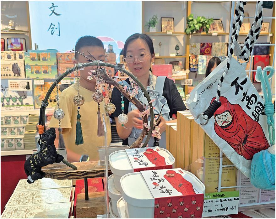 7月3日,游客在陜西歷史博物館文創店挑選文創產品。