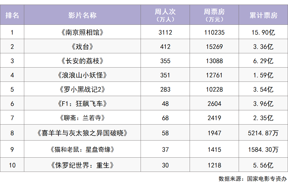 周榜方面,陳佩斯主演的《戲臺》和大鵬執導的《長安的荔枝》分列周榜第二、第三位,周票房分別為1.52億和1.30億。兩部國產動畫《羅小黑戰記2》與《浪浪山小妖怪》同樣贏得觀眾廣泛贊譽。此外,《聊齋:蘭若寺》《喜羊羊與灰太狼之異國破曉》以及新近上映的《貓和老鼠:星盤奇緣》,使動畫電影在質量和數量上雙雙發力,為家庭觀影提供了豐富選擇。