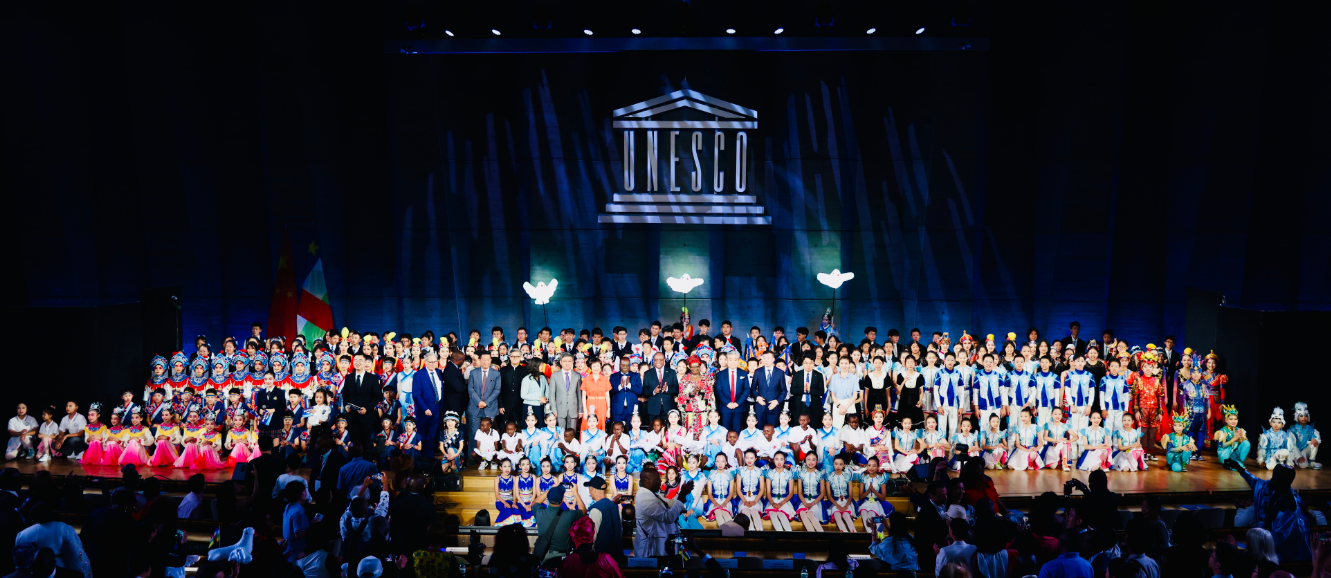 巴黎時間8月5日晚,為紀念世界反法西斯戰爭勝利80周年及聯合教科文組織成立80周年,由聯合國教科文組織協會世界聯合會、中非共和國駐法蘭西共和國大使館、中非共和國常駐聯合國教科文組織代表團、北京圣陶國際教育文化交流中心共同主辦的“揚起和平的風帆”━━2025年亞非歐中小學生文化藝術交流專場演出在聯合國教科文組織巴黎總部舉辦。